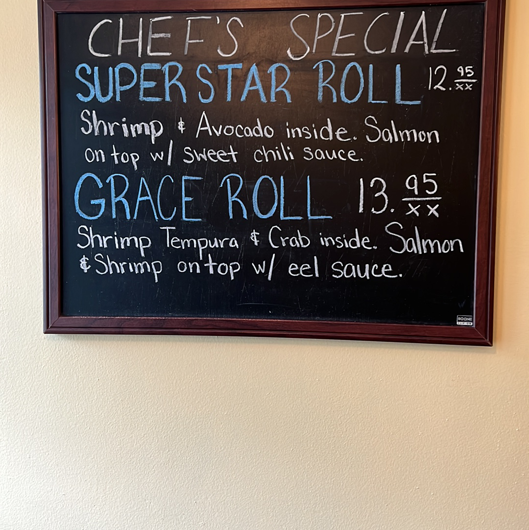 Smoked salmon, shrimp & avocado outside, shrimp tempura & crab meat inside with chef's sauce
